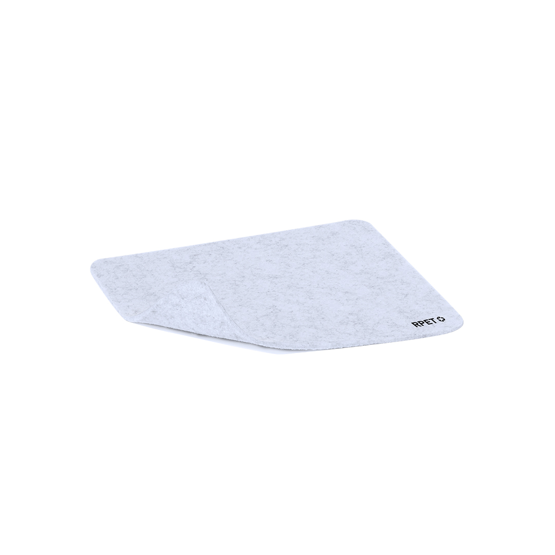 Elegante alfombrilla de ratón fabricada en suave fieltro RPET. Con base antideslizante de silicona, asegurando que se mantenga firme durante su uso. Incluye distinto RPET. Presentada en una bolsa individual reciclada.El fieltro RPET reciclado es fruto de la combinación del proceso de reciclaje de materiales plásticos junto a la técnica milenaria de fabricación del fieltro, dando como resultado un material de eco-tendencia que, además de ser de origen reciclado, también se convierte en reciclable.