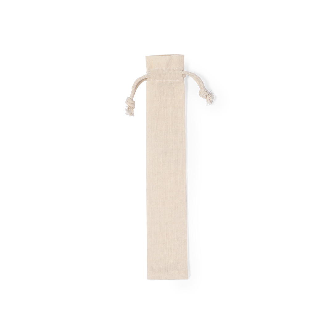 Bolígrafo lápiz eterno 2 en 1, fabricado en bambú, con cuerpo de suave acabado y accesorios cromados. Con cierre de capucha con borrador y puntero en cada extremo, incluye bolígrafo en un extremo (carga jumbo y tinta azul), y lápiz eterno en el otro extremo, para así usar siempre el mismo lápiz y no generar residuos. Presentado en funda de algodón 100%, con cordón de cierre.