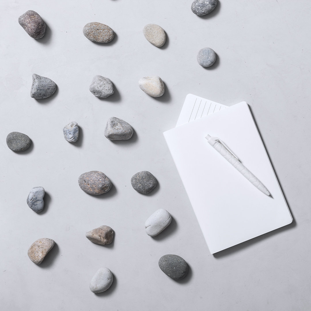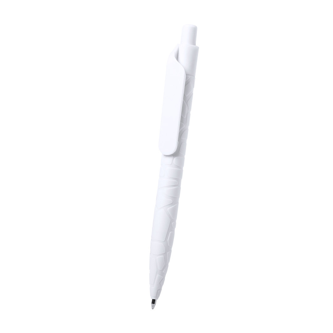 Bolígrafo de línea nature y mecanismo pulsador. Cuerpo troquelado fabricado con extractos de piedra natural, ayudando a la reducción del uso de plásticos, además de proporcionar un acabado suave y resistente. En color blanco y con distintivo natural stone en la parte superior, de cartucho jumbo y en tinta azul.