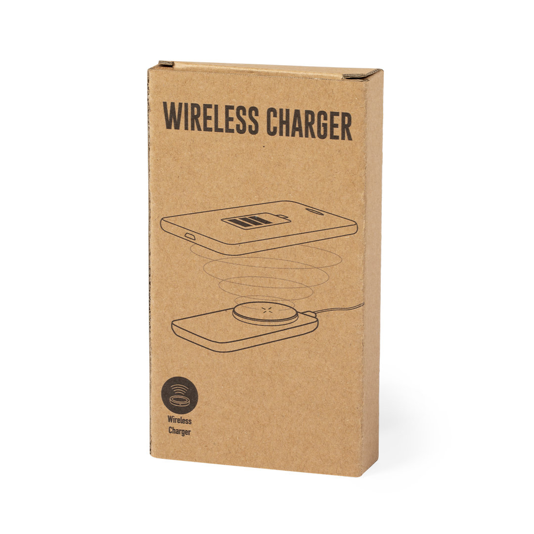 Cargador inalámbrico de línea nature. Hecho en bambú en combinación con caña de trigo, para así fomentar la utilización de materias primas naturales y reducir las emisiones contaminantes. Indicador de estado de carga y compatible con dispositivos equipados con tecnología de carga inalámbrica. Amplia superficie de marcaje y presentado en atractiva caja de diseño eco. Cable incluido.