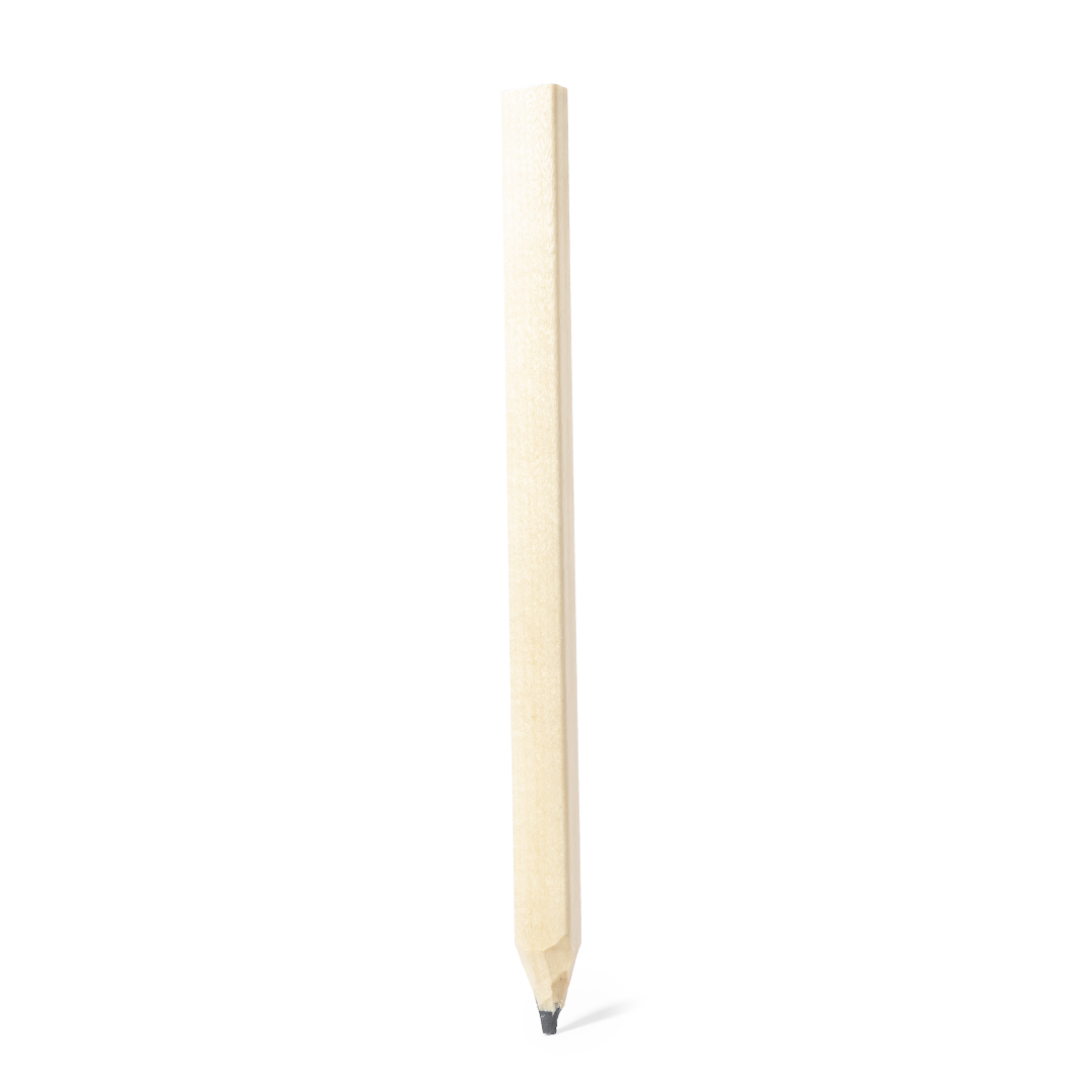 Clásico lápiz de carpintero fabricado en madera natural y con forma rectangular. Mina negra y punta sin afilar.