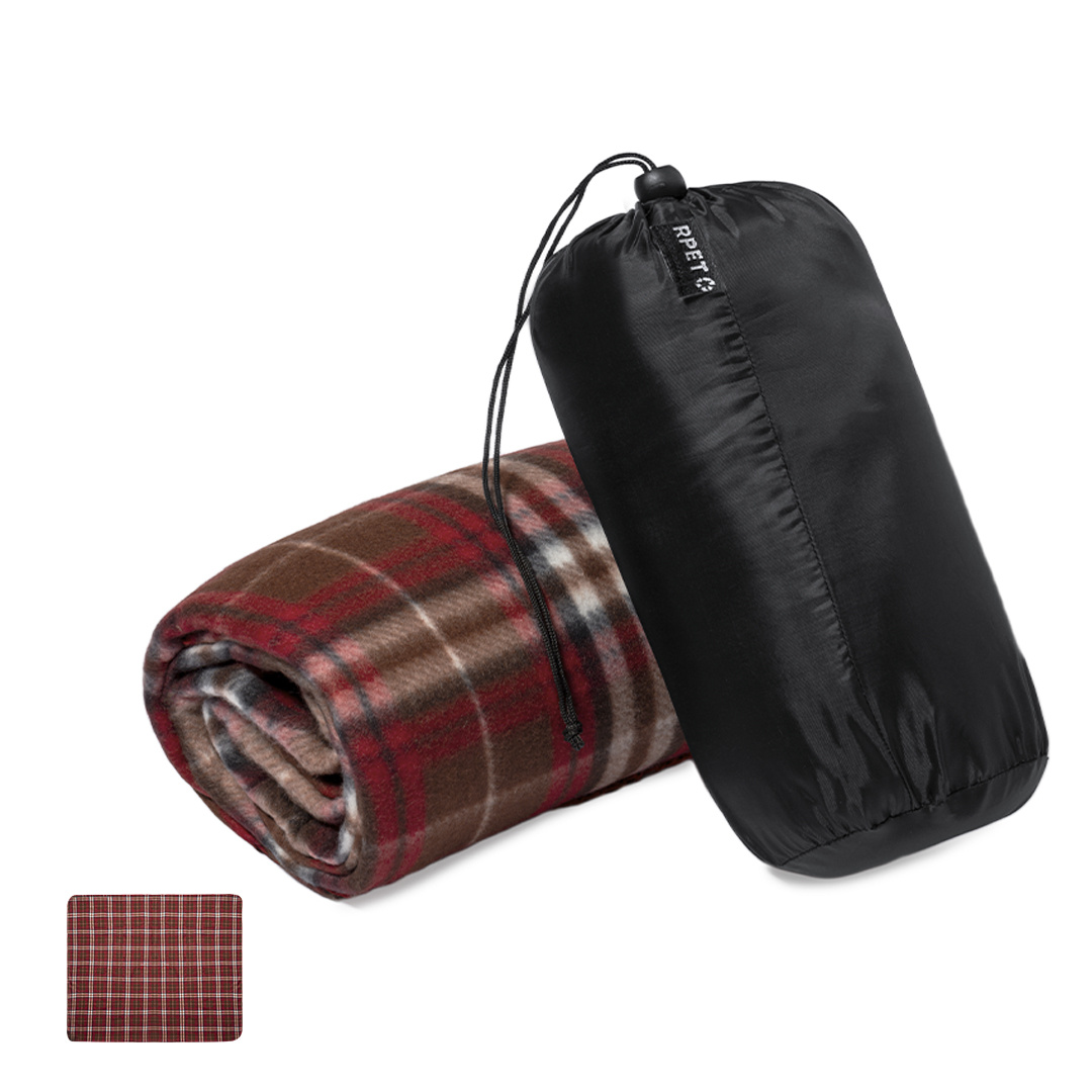 Manta fabricada en cálido poliéster RPET de 200g/m2. Medidas 120x150cm, con patrón tartán bicolor de suave tacto. Disponible en variada gama de colores. De fácil plegado y de tamaño compacto, incluye bolsa de transporte y autocierre, con logotipo RPET en etiqueta.El material RPET se elabora a partir de plástico reciclado, para así fomentar la reutilización de residuos plásticos y ayudar a la sostenibilidad del planeta.