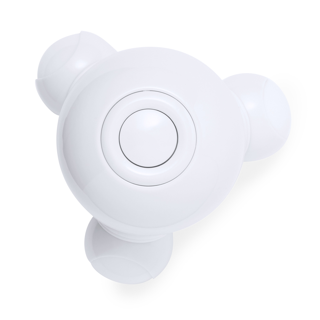 Masajeador de mano eléctrico. Excelente confort por sus propiedades de vibración, ofreciendo una experiencia de relajación y alivio. Su diseño se adapta fácilmente a la mano para un agarre firme, con luces indicadoras de funcionamiento dentro de las bolas. Compacto y portátil, alimentado por 3 pilas AAA (no incluidas). Presentado en una caja de diseño kraft.