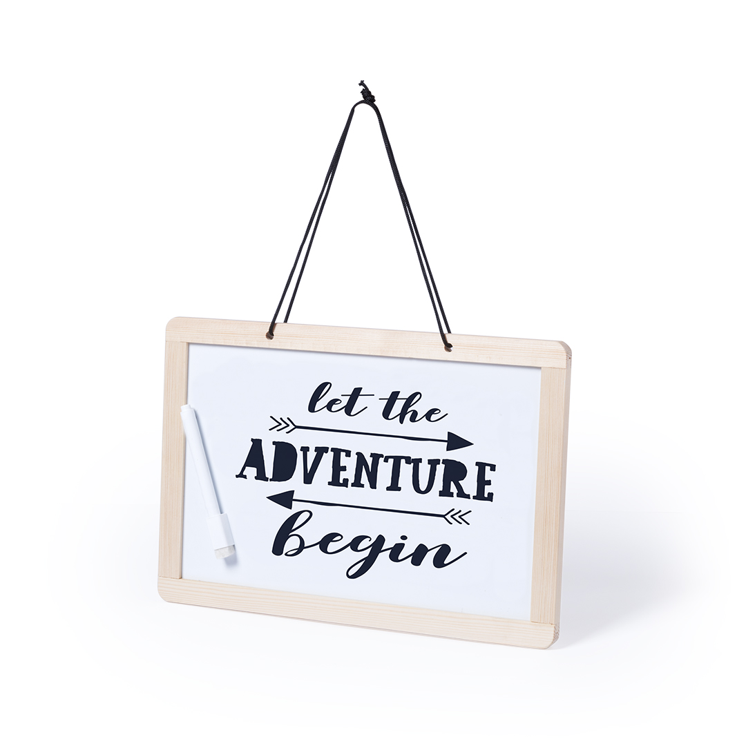 Pizarra para colgar de doble cara. Tradicional pizarra de tiza en una cara con 3 tizas incluidas + pizarra para rotulador en la otra cara -rotulador incluido-. Con borrador de doble cara para tiza o rotulador.