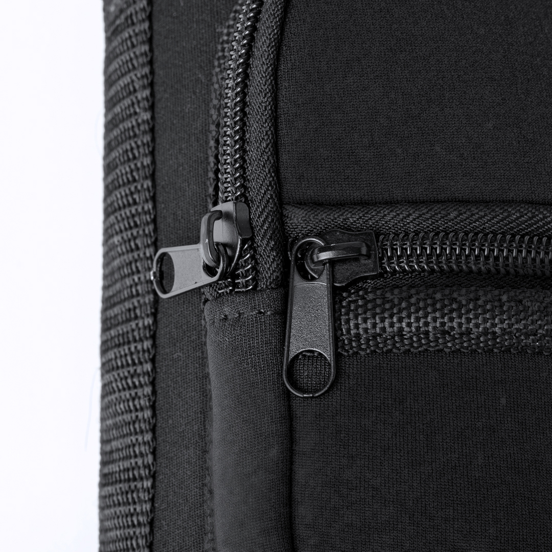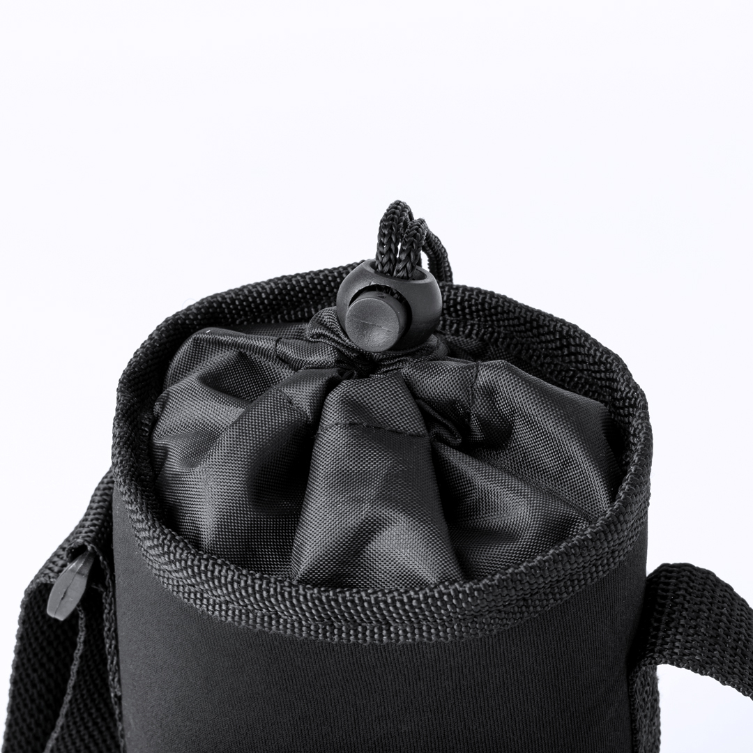 Portabidones de hasta 1,5L, fabricada en soft shell. Con cierre de cordón y se lleva cómodamente con la cinta para el hombro ajustable. Con bolsillos frontales de cremallera. Presentado individualmente en bolsa reciclada.