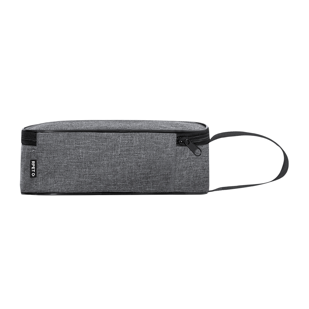 Portabocadillos térmico exterior fabricado en RPET 600D e interior isotermo en aluminio. Con cierre de cremallera y asa de transporte. Distintivo de RPET en etiqueta. El material RPET se elabora a partir de plástico reciclado, para así fomentar la reutilización de residuos plásticos y ayudar a la sostenibilidad del planeta.
