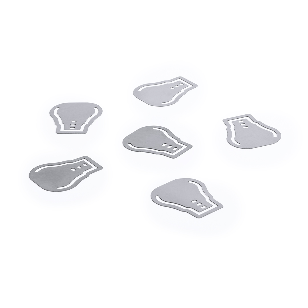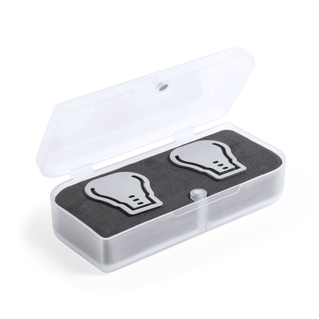 Set de 20 clips en diseño de bombilla. Presentados en estuche individual de PVC translúcido con cierre magnético e interior troquelado en suave espuma.