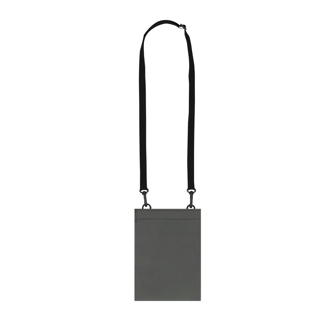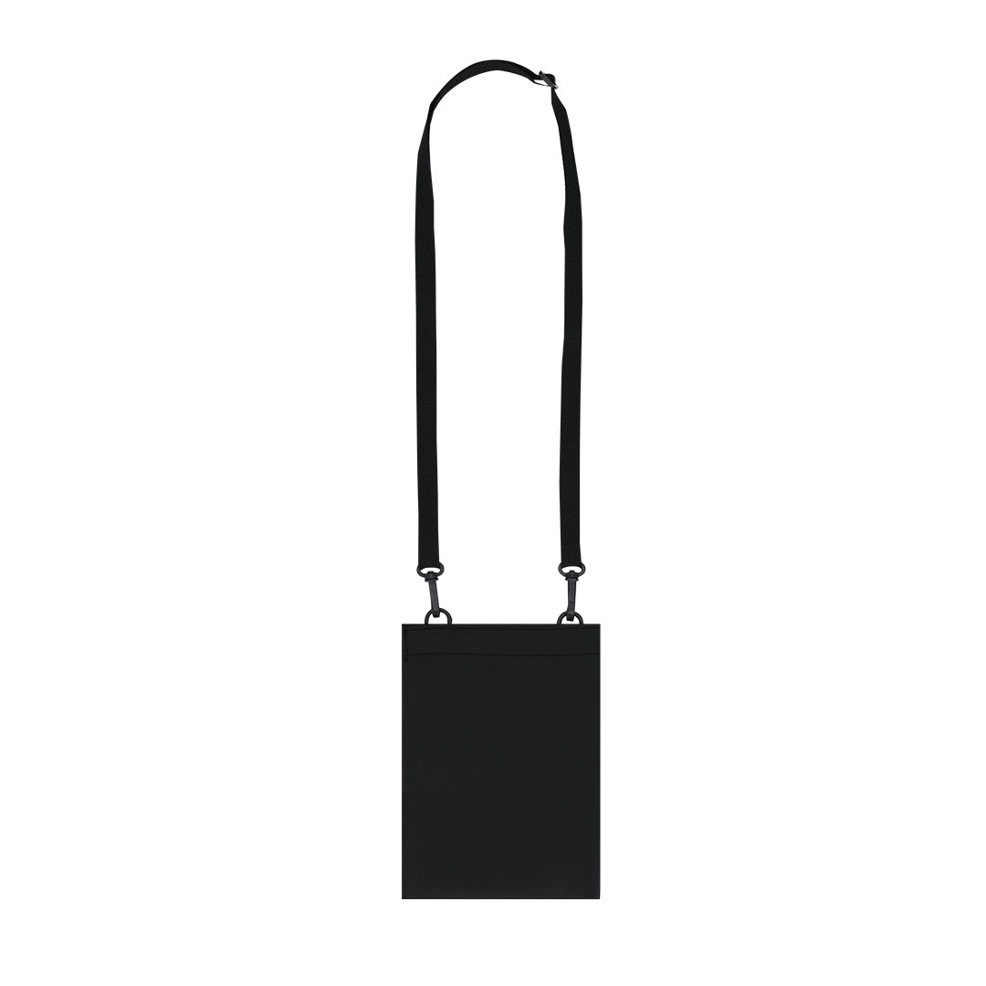 Portatodo fabricado en suave PU. Compartimento principal con cierre de velcro y amplia entrada con fuelle extensible. Incluye cinta ajustable plana con doble enganche de mosquetón giratorios.
