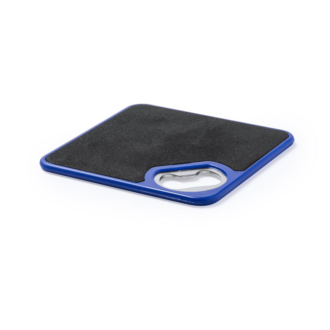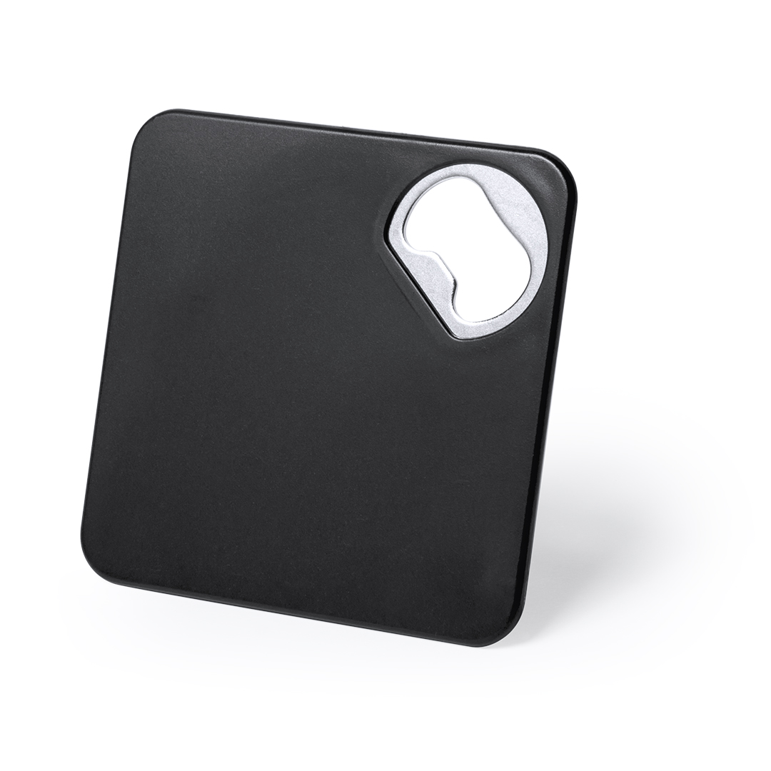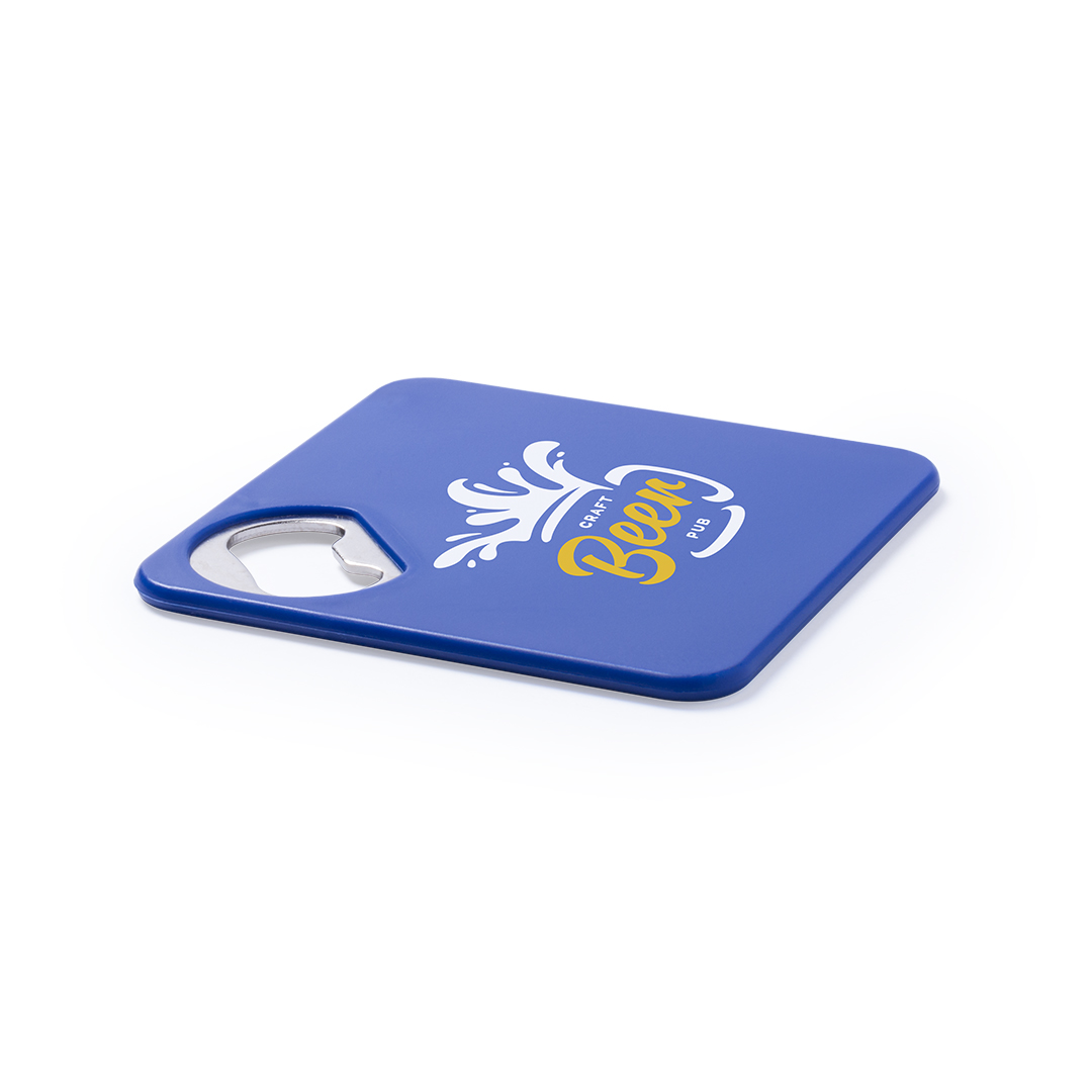Original posavasos con abridor metálico integrado en variada gama de vivos colores. Con superficie anti deslizante en la base.