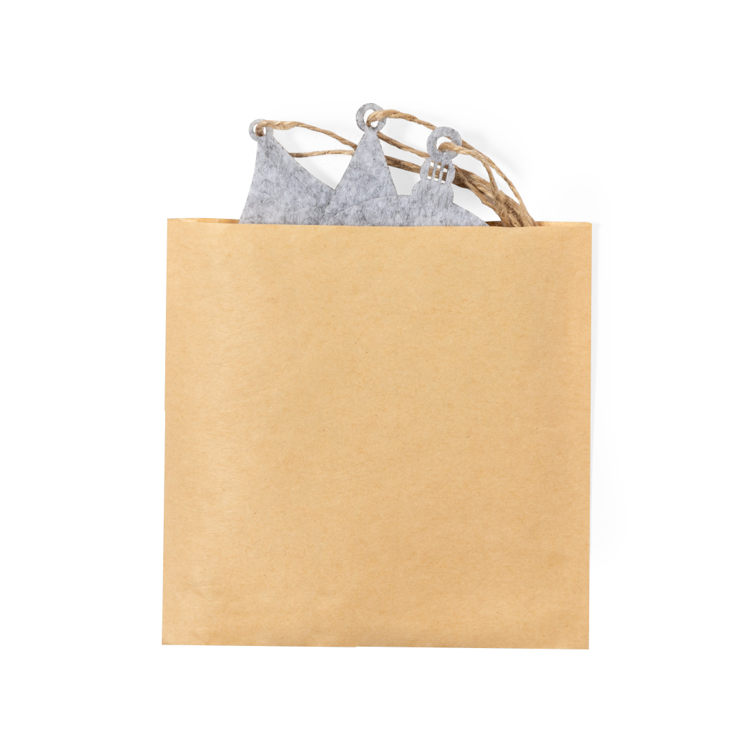 Set de adornos navideños de 3 piezas fabricadas en suave fieltro. Incluye en 3 diseños: Árbol de Navidad, Estrella y Bola Navideña. Todas las piezas incluyen colgador. Presentado en bolsa de papel reciclado.